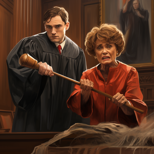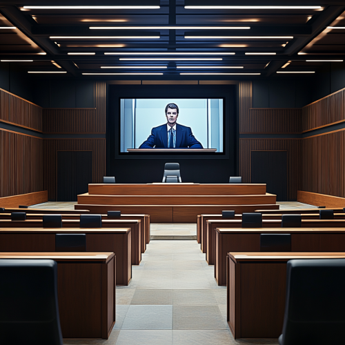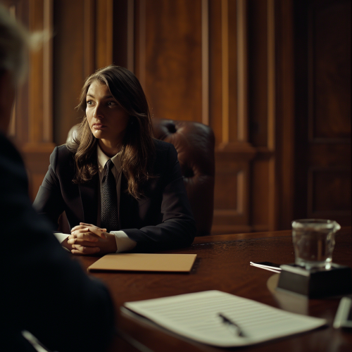 Photo of Joseph Mercola’s Daughter in Court . She is wearing an orange prison jumpsuit, sitting on the defendant's bench in a courtroom. In the background, the judge and lawyers are visible, and the atmosphere in the courtroom is tense. Her face shows worry and stress, with her hair neatly styled. The lighting highlights the seriousness of the moment. Make sure the details, such as the prison jumpsuit and elements of the courtroom, are clearly depicted. The photo quality is average, taken with an iPhone X. --ar 3:4 --style raw --s 50 --v 6.0