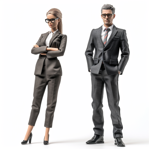 a full body portrait shot of a female lawyer and a male lawyer in a photo studio with a white background both in Barbie and ken style, ultra realistic --v 6.0