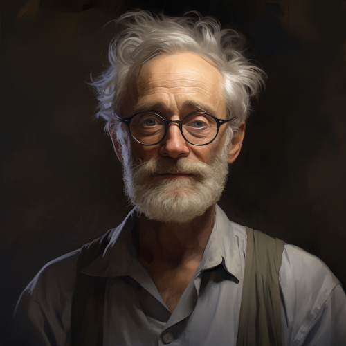 a middle-aged man with a calm, composed demeanor. He wears glasses, suggesting wisdom and thoughtfulness. His modest, unassuming appearance reflects his humble and moral nature, and his gentle, yet firm, gaze conveys his deep sense of justice and integrity.