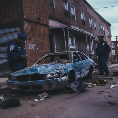 cops on a scene of a dead body in Newark New Jersey projects. 45mm lens