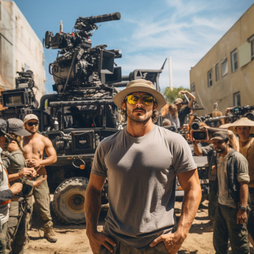 man defends his business as feds raid a construction site, wide shot, arri cinema, cooke lenses, realistic