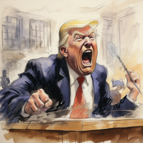 a courtroom sketch of a bearded Donald Trump Jr where he looks really handsome