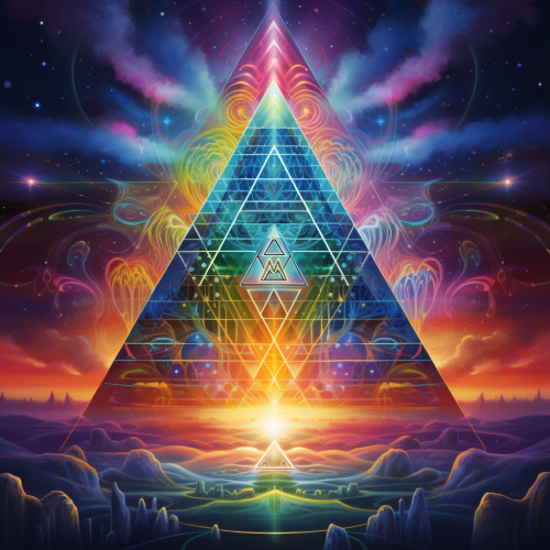 a hermetic representation of high frequency, high vibration, universe, law of attraction, manifestation, geometric shapes, aura, light