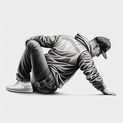 detailed monochrome illustration, side view of plain-clothes police officer shooting a pistol while laying on his back, injured after a shootout, wearing jeans, a sweatshirt, and baseball hat, no background --v 4 --upbeta