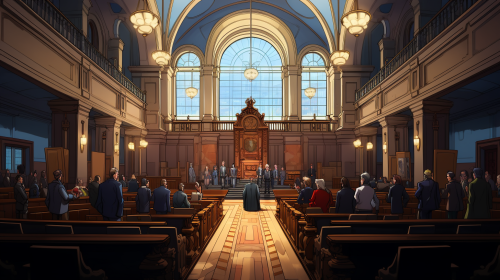 An image showing the inside of a courthouse in France::3 cartoon::3 --aspect 16:9