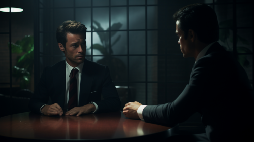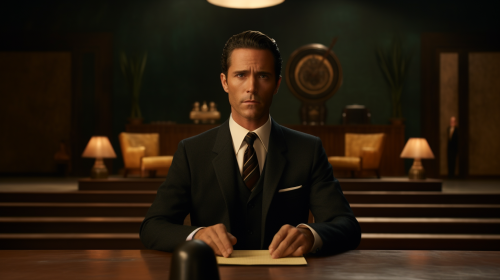 Manuel Garcia-Rulfo as the Lincoln lawyer in an expensive suit, addressing a judge, cinematic, realistic, 8K --ar 16:9