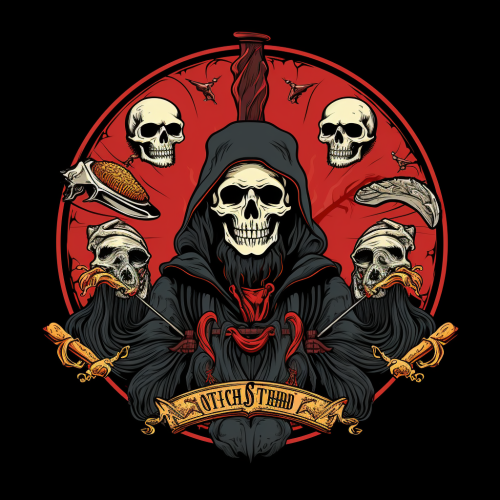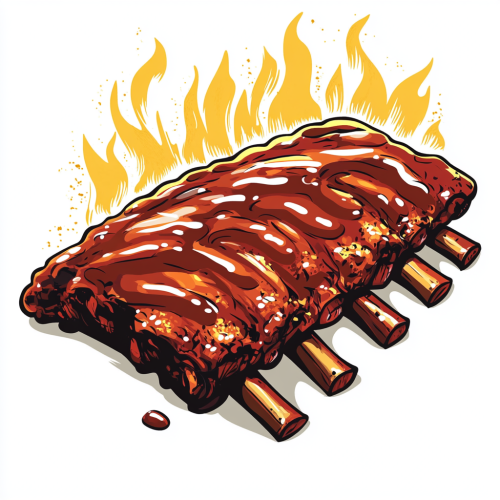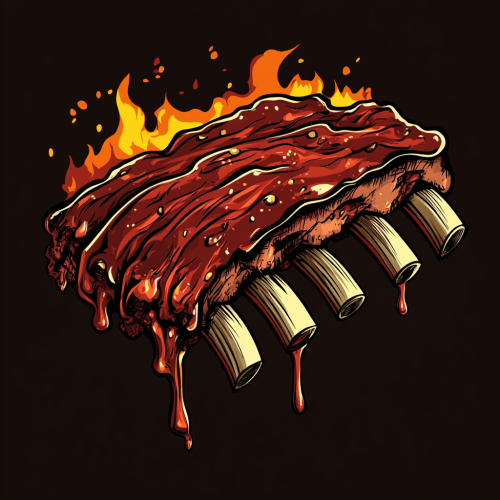 hyper-detailed vector business logo clip art hand drawn BBQ ribs with sauce dripping and great lighting it should look delicious with accent with fire and flames and grilling tools