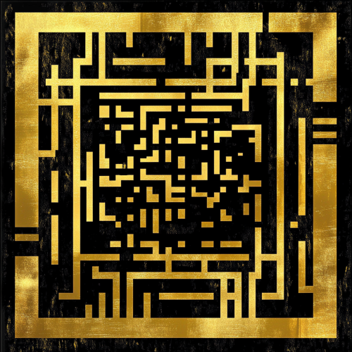 i want to create a frame for a QR code. I would like it themed for the university of Coorado at BOulder Chemistry/Biochemistry club, with black and gold for colors. I want it desinged as a simple logo.