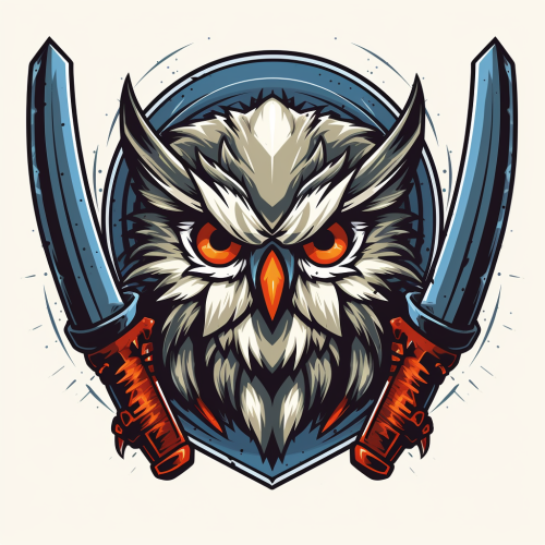 agressive owl head with hockey helmet in front of two crossed ice hockey sticks, logo style, nhl style, 2D, flat design