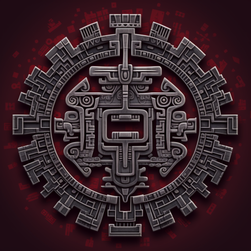 llogo for a bloodthirsty modern day Aztec Incan artificial intelligence company, circular, high contrast --weird 100 --s 250