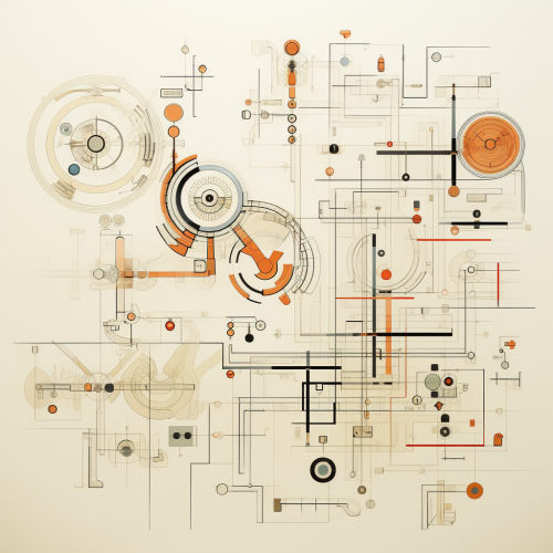 the greek concept of logos represented as abstract art drawn in the style of a 1960s engineering diagram