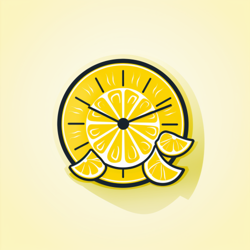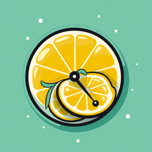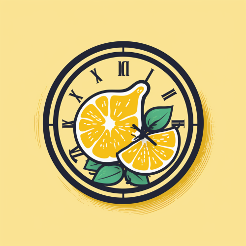 1960's style logo featuring a clock that looks like a lemon slice --v 5.2