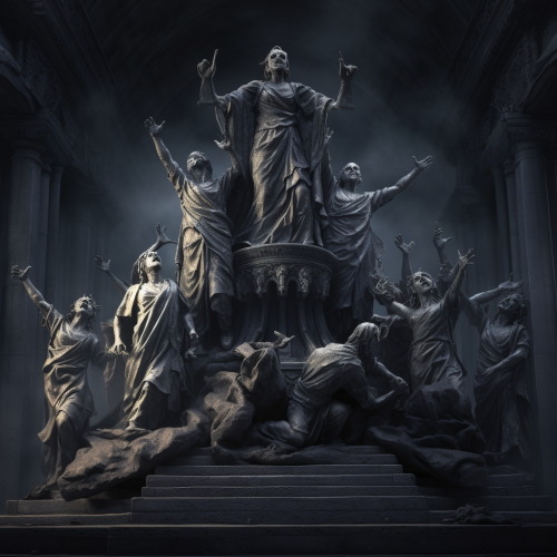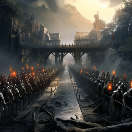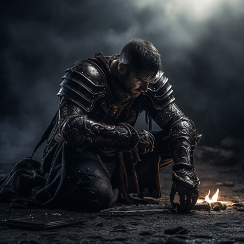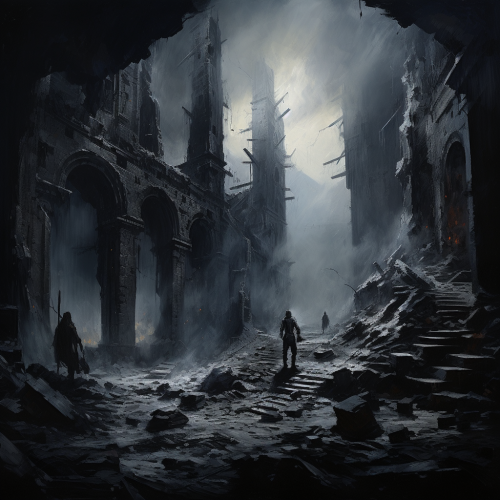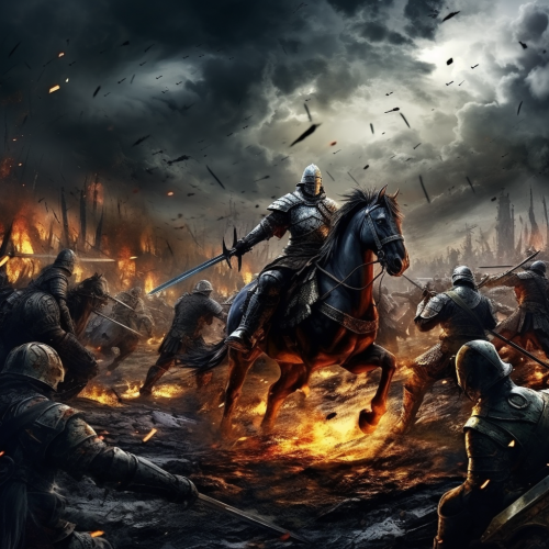 gods fail and leaving the battle in a dark medieval world in semi-realistic art style --v 5.0 --s 750