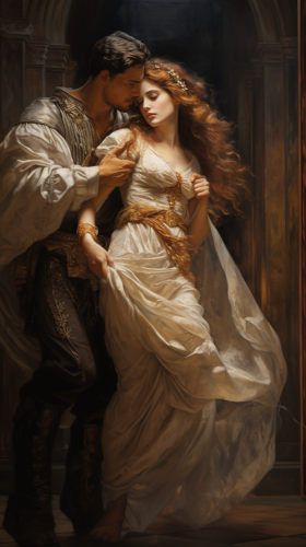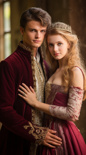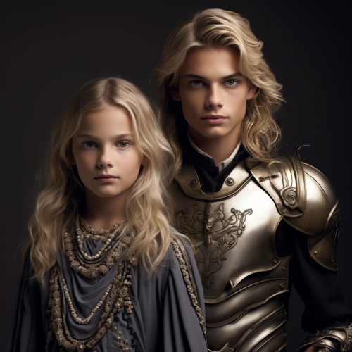 The beautiful 6-year-old prince with blonde hair and the lovely 15-year-old female knight who protects him
