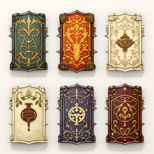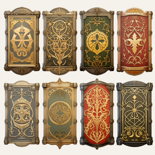clip art of medieval style book covers, 2d, on white background, solid colors, clean lines, --v 5.2