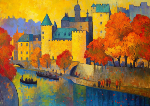 medieval paris streed by the river, inspired by mordecai ardon and odilon redon and pierre bonnard and edouard vuillard and otake chikuha and drexter and francis hodgkins, no text, no watermark, no signature, no copyright --v 5.0 --ar 14:10 --no borders, frames, split frames