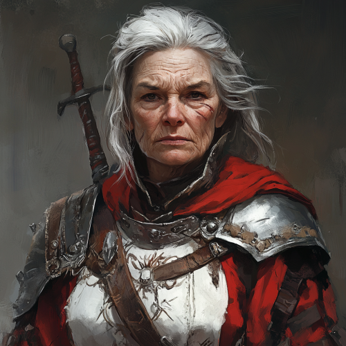 digital painting of an older woman soldier mercenary, tight braided hair, not very attractive, neutral grey background, three-quarter portrait, Dungeons and Dragons --ar 2:3 --v 6.1