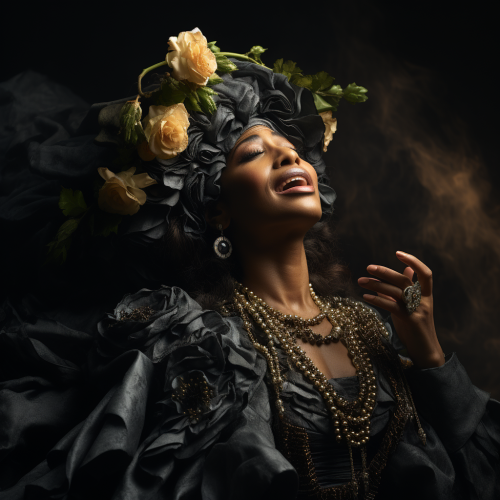 a shocking photograph of a beautiful female backup singer for roxy music, in the style of progressive rhythmic trance, very confident, dream-like photography, beautiful details, natural light --s 350 --ar 2:3