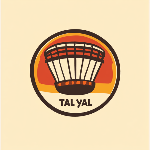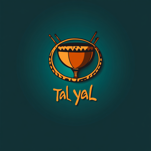 Design a professional logo for a percussionist named Tal Eyal. The logo should incorporate the phonetics of ‘Tal Eyal’ with elegant typography, blending serious and friendly elements. Include world music percussion motifs like drums, tambourines, and rhythmic patterns. Include two main colors for the theme.