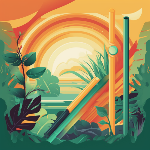 Modern reggae album cover, floating flute surrounded by abstract tropical elements (palm leaves, waves, sunbursts), pastel reggae colors (soft greens, yellows, oranges), smooth gradients, no people, island-inspired, light and minimalist --v 5.0 --ar 1:1 --s 750