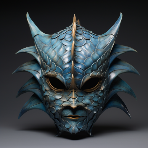 a half mask of azure scales and one ridged horn in its center of the forehead