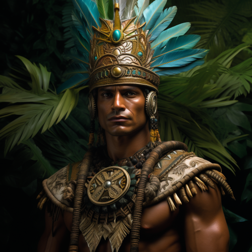 captain moroni from the book of mormon in full mayan gear. hyper realistic