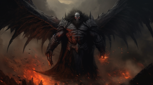 Durin's Bane has wings. Demon of Might was indistinct, a real blend of shadow and fire. Only his horned head, cloven feet, and clawed hands could clearly be seen. --ar 16:9 --v 5.2