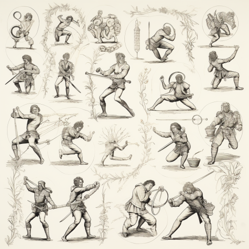 a page showing a series of drawings of male greek statuary fighting, locked in battle, draped in fine linen, black and white line art, low-fi, naive blackwork
