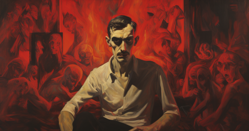 Hades : an underworld filled with shadowy souls in style of Max Beckmann, --style raw --ar 21:11