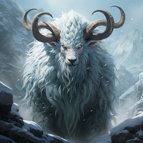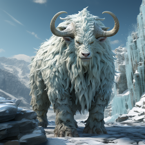 Ice Spike Looks like a tall thin human Teal & clear Big white & thick fur Kinda like a yeti Gray curling horns like a ram Very tall (tallest character) Icy blue eyes and long sharp blue nails Freeze touch --s 750 --v 5.2