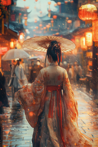 Chinese Tang dynasty Zhou Dynasty, Wu Zetian ascended the throne, bustling streets, Tang dynasty, warm colors, metaverse, movie posters,using the camera to shoot --ar 2:3