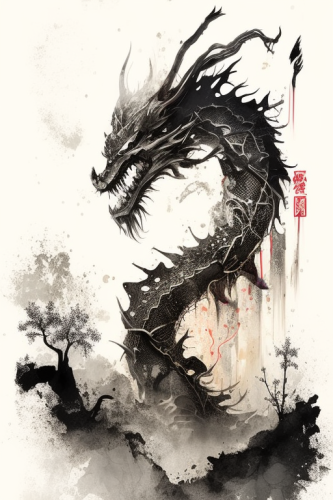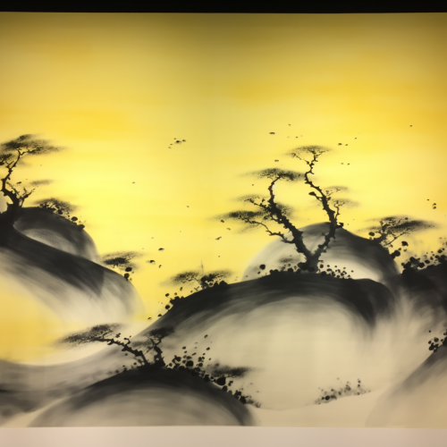 black and yellow Sumi-e , in the style of Julia sarda --weird 100 --c 5 --ar 1:1