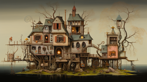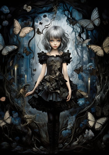 gothic wonderland themed mixed media painting , Wonderland Gothic Fairytales Merge elements from classic fairytales with a dark twist --ar 5:7 --s 150