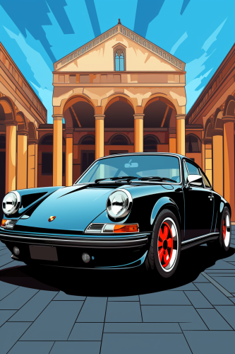 porsche porsche 911, 1979, in the style of architectural illustrator, light black and gray, intense color saturation, freehand painting, 1960s, clean and streamlined, duckcore --ar 85:128 --s 250 --style raw
