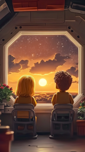You said : crée moi un tableau pour midjourney de l'intérieur d'un vaisseau ou l'on voit par la fenêtre un couple qui on le visage comme les lego admire un magnifique coucher de soleil en un style dessin a la main a l'aquarelle ChatGPT said : ChatGPT I can describe this imaginary scene in words, but I can't create images or paintings directly. Here is a detailed description: Title : ‘Sunset on board’ Description : Aboard the spaceship Midjourney, in the relaxation room, a large bay window takes up an entire wall. Through it you can see the immensity of cosmic space, dotted with twinkling stars and distant nebulae. The distant sun casts a soft light that bathes the room in shades of orange and gold. In the foreground, a couple, their faces stylised like Lego figurines, gaze out of the window in fascination. Their features, simplified by the characteristic Lego angles, do not hide the wonder in their eyes. The woman has straight yellow hair and a slight smile, while the man wears a small smile with a well-defined brown beard. Behind them, some simple polished metal furniture and potted plants add a touch of greenery to the ship's metallic surroundings. The room is decorated with brightly coloured abstract paintings, contrasting with the technological austerity of the place. Outside, the sunset is magnificent: a reddish sun slowly melting into the folds of a distant planet, painting the sky in shades of pink, orange and purple. The clouds float delicately above the planetary surface, creating a celestial tableau worthy of a work of art. The contrast between the tranquillity of the landscape outside and the intimacy of the moment shared by the couple creates an atmosphere of calm and contemplation within the Midjourney spaceship, where the exploration of the universe [...]