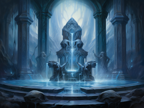 An intricately designed artifact resembling an ancient Greek or Roman astrolabe, floating above an alchemist's workbench. It emanates aetherial energy with mysterious symbols. Blend ancient mechanical precision with mystical symbols, creating an artifact that resonates with the cosmos. MTG card art. blue lighting. painting. detailed. --ar 4:3