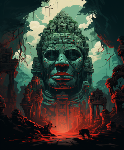 the ancient place has two ancient buried there, in the style of maroon and cyan, simplified and stylized portraits, cartelcore, bold posters, traditional vietnamese, flat chromatic fields, i can't believe how beautiful this is --ar 107:128 --stylize 250 --v 5.2