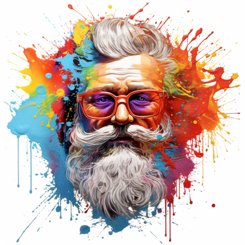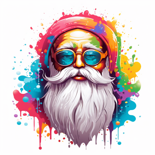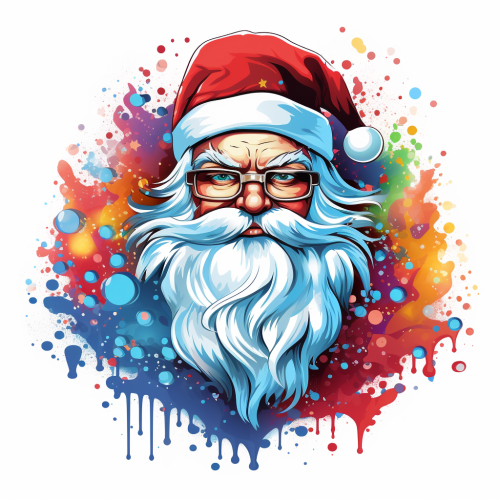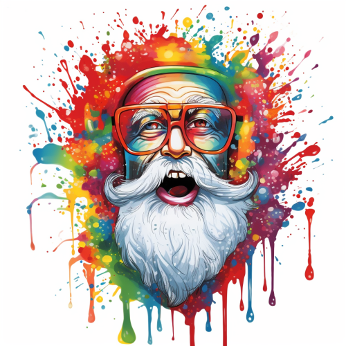graphics brushwork, cartton style, Canvas paintings,t-shirt design, abstract, colorful art splash,random colours rainbow, painting, Beauty full cute, father christmas, dripping, white background --v 5.2