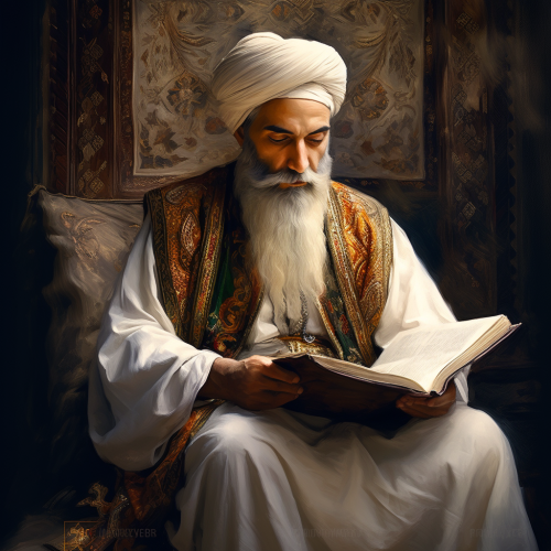 handsome turkiye sufi white turban reading a book, Full Beard, Ducktail Beard, orientalist painting style, detailed