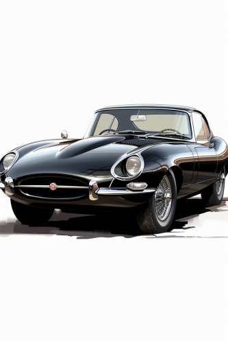 jaguar etype, white background, 1979, in the style of architectural illustrator, light black and gray, intense color saturation, freehand painting, 1960s, clean and streamlined, duckcore --ar 85:128 --s 250 --style raw