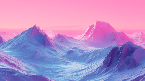 a picture of white blanc mountains, outdoor filled up with very thin different colored lines, on a magenta color background, wide angle shoot --ar 16:9 --style raw --s 250