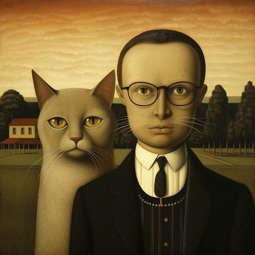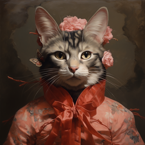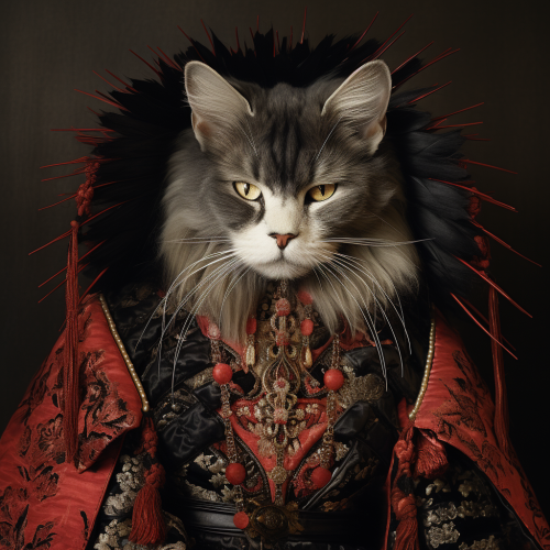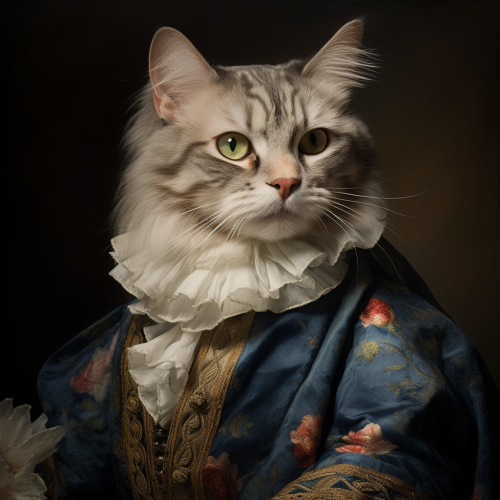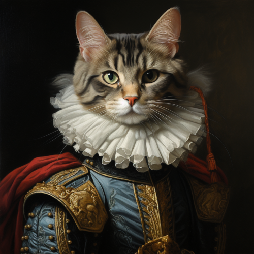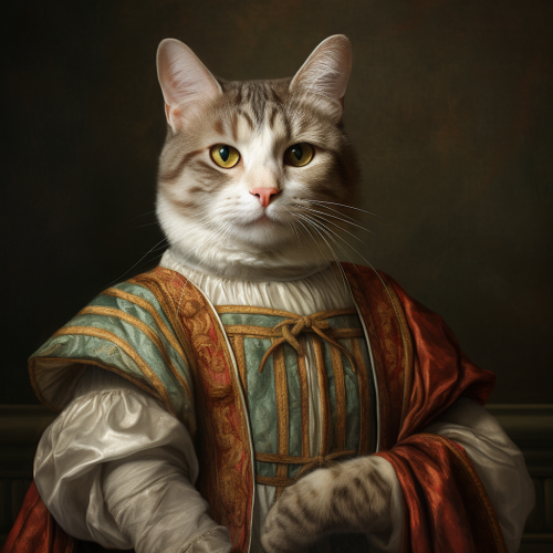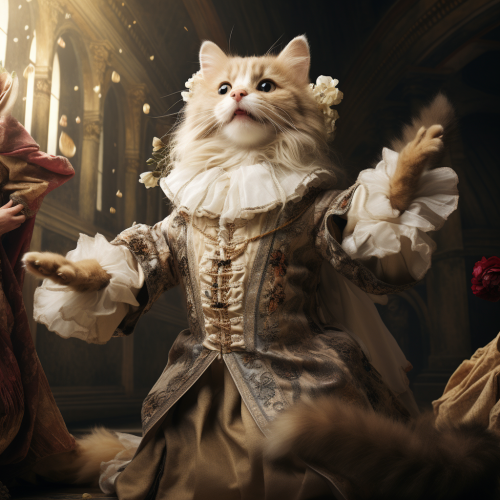 a dog dancing with a cat, they are dressed in a typical renaissance outfit, renaissance painting edit --s 250