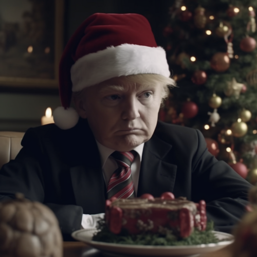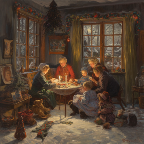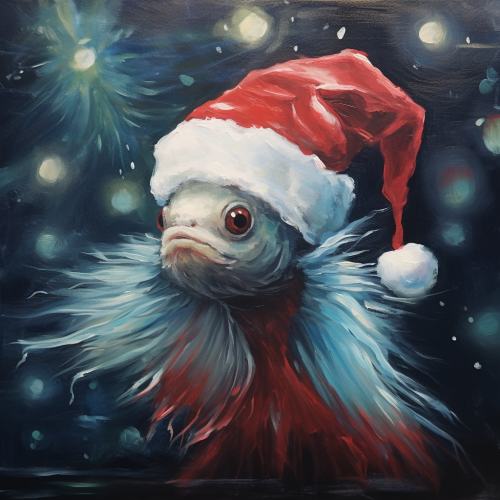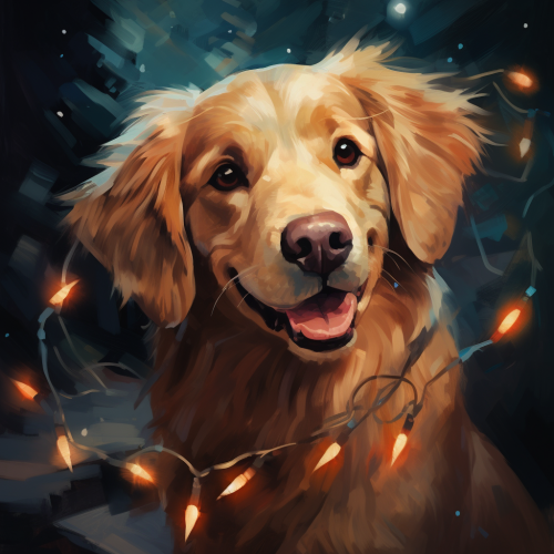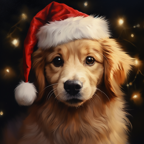 cute realistic dog in a santa hat christmas lights cottagecore painting