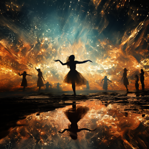 dancers dancing in the tip of time at night with star dust in the style of monet dali parish