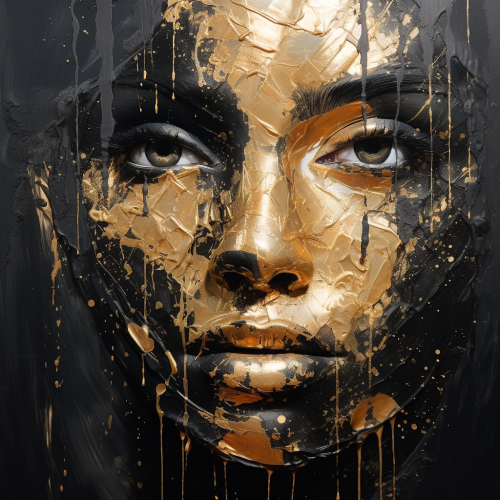 abstraction painting, gold paint, organic nature, darkart, dark artist, unregular. Woman face