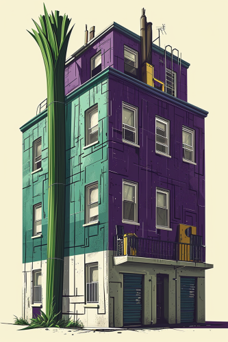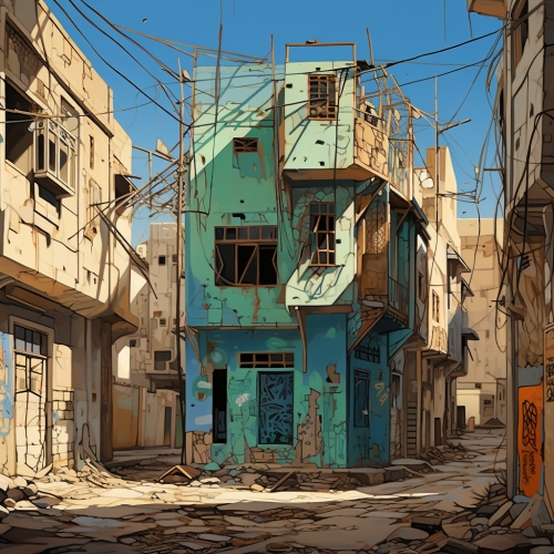 Al balad old Jeddah buildings with roshan windows green blue brown colors, graffiti, abstract painting