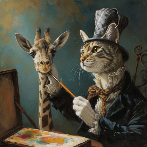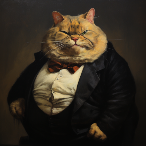Portrait of the Fat Cat in oil, black background, original oil, contrasts, Charles Wood, pastiche by Paul Hadley, N.K. Wyeth, palette knife --s 50 --v 5.2 --ar 1:1