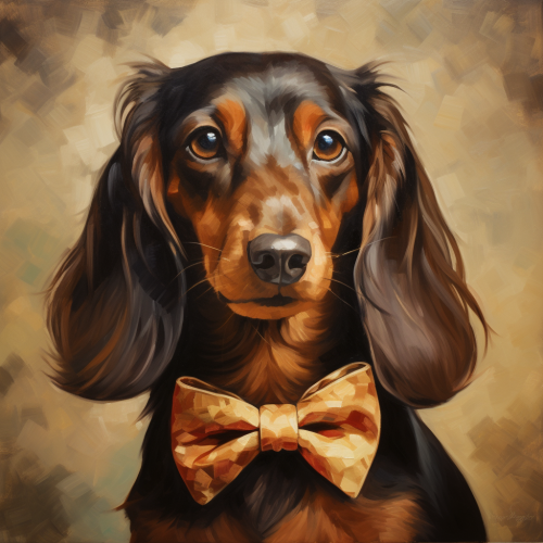 oil painting of chocolate brown long hair dachshund classic bow tie and cigar
