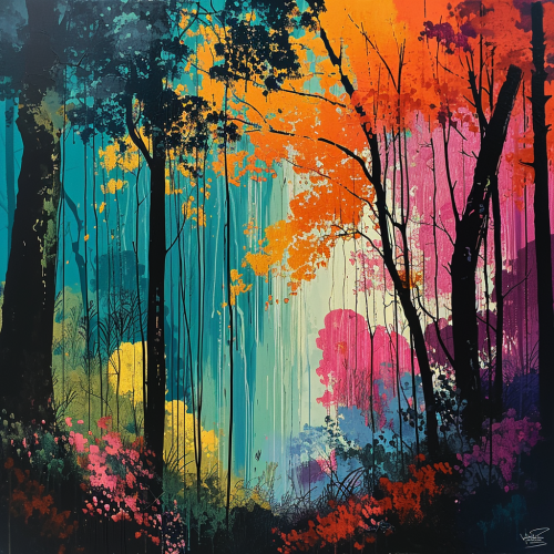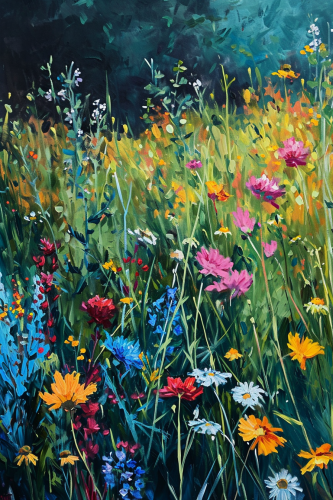 Smooth oil painting of a field of wildflowers with neon underpainting, vibrant colors, pop-inspired, flat backgrounds, playful use of light and shadow, centered image, style of basquat, high contrast bright color, solid background --ar 2:3 --v 6.0