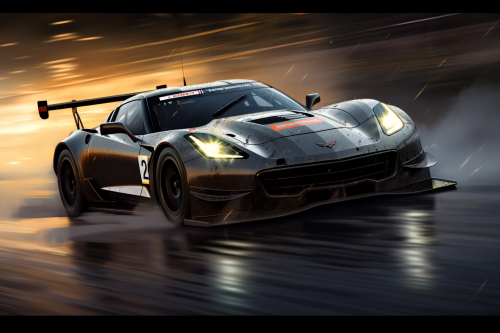 corvette c7 corvette racing with Number 22 by jason shaw tmc txrphotography, in the style of samyang af 14mm f/2.8 rf, dark brown and gray, sketchfab, organic movement, 32k uhd, subdued pointillism, non-representational forms --ar 128:85